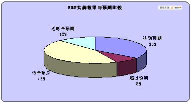e-works調查表明,2004年中國制造企業已由原來被動接受ERP廠商的理念灌輸逐漸過渡到能夠理性選擇ERP系統,制造企業對ERP的應用預期變得更加理性。35%和8%的應用ERP的制造企業認為ERP系統的實施達到或超過了預期,但仍有45%的企業認為低于預期,12%的企業認為遠低于預期。總體來說,中國制造企業對ERP應用的滿意度較2003年有一定增長。