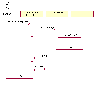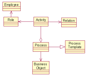 在這個模型中,過程有活動組成,活動之間存在不同類型的關系,每個活動由承擔相關角色的員工執行。針對某個具體業務對象的審核過程定義可以在審核過程模板上進行。基于上述模型,我們可以定義一個為采購訂單定義一個審核過程。
