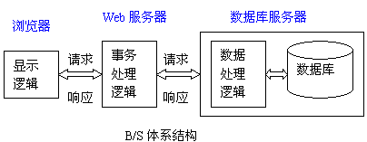 本質(zhì)上B/S也是一種C/S,它是由傳統(tǒng)的二層C/S結(jié)構(gòu)發(fā)展而來的三層C/S結(jié)構(gòu)在web上的應(yīng)用,即瀏覽器/Web/數(shù)據(jù)庫(kù)服務(wù)器結(jié)構(gòu)的三層結(jié)構(gòu)。三層的B/S體系結(jié)構(gòu)是把二層的C/S結(jié)構(gòu)的客戶事務(wù)處理模塊從客戶機(jī)的任務(wù)中分離出來,由單獨(dú)的一層來負(fù)擔(dān)其任務(wù),把負(fù)荷均衡的分配給了Web服務(wù)器,這樣給客戶機(jī)的壓力大大減輕了,于是原來兩層的c/S變成了三層的B/S結(jié)構(gòu),這種三層體系結(jié)構(gòu)如下圖: