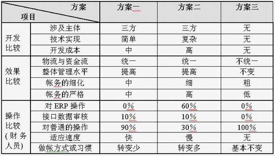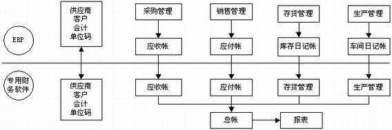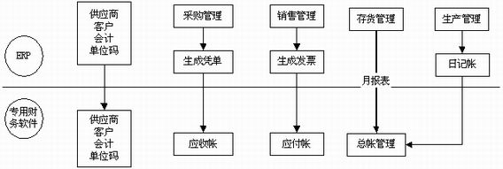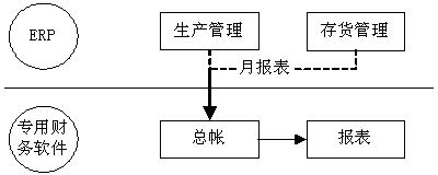 這種方案是:物流系統(tǒng)使用ERP系統(tǒng),財務處理使用普通財務軟件。