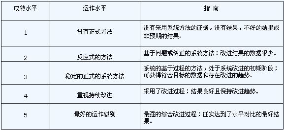 另外應當強調的是,即使一個組織在某些方面達到第5級,也只能表明當前暫時不需要進行改進。一段時間后如果發現了不足之處仍然需要制定改進措施。