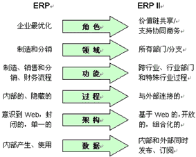 系統在這些行業的功能超越了制造、分銷和財務領域的范圍,擴展到特殊的行業部門和特殊的行業。ERP II產品以Web為中心、集成設計的體系結構與ERP的單一結構有很大不同以至最終需要完全的變革。從ERP企圖將所有的數據存儲在企業內部,ERP II擴展到貫穿于整個貿易共同體分布式處理數據。