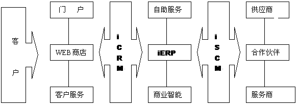 iERP融合了最新的企業(yè)管理理念及INTERNET技術(shù),從管理思想、應(yīng)用模型及技術(shù)手段三個(gè)方面徹底的解決了傳統(tǒng)ERP的瓶頸,為企業(yè)管理提供了嶄新的、總體擁有成本(TCO)最低的解決方案。iERP以供應(yīng)鏈管理為核心,包含企業(yè)級(jí)財(cái)務(wù)管理、制造管理、人力資源、決策支持系統(tǒng),能適應(yīng)大型、集團(tuán)型企業(yè)分布式、體系化的管理模式,并能滿足企業(yè)的跨國、跨地應(yīng)用。貫穿其中的JAVA技術(shù)和面向INTERNET的數(shù)據(jù)庫技術(shù)將使其具有良好的兼容性、安全性和擴(kuò)展性,可以使iERP完美的與電子商務(wù)、辦公自動(dòng)化系統(tǒng)整合應(yīng)用,成為INTERNET時(shí)代最有效、最易用的企業(yè)管理工具。先進(jìn)的B/S(瀏覽器/服務(wù)器)結(jié)構(gòu)可將企業(yè)級(jí)應(yīng)用從原有的辦公桌面,擴(kuò)展到世界各個(gè)角落的計(jì)算機(jī)、終端、甚至移動(dòng)電話、PDA、信息家電等新型的終端產(chǎn)品。它將以其更簡易的操作性、更好的伸縮性為企業(yè)發(fā)展提供更有力的支持。iERP改善了供應(yīng)鏈中各部分間的溝通,提高了供應(yīng)鏈的效率,滿足了企業(yè)多元化制造和個(gè)性化服務(wù)的需求,實(shí)現(xiàn)企業(yè)體系化管理和分布式應(yīng)用,為企業(yè)運(yùn)籌內(nèi)外部資源,提高客戶滿意度,迎接全球化的競爭和持續(xù)發(fā)展提供源動(dòng)力。 用一個(gè)簡易公式描述ERP與iERP即為: iERP=ERP+iSCM+iCRM