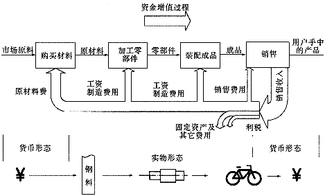 企業的生產過程是給物資賦予勞動、知識和信息,改變其形狀、功能或性質的過程,也是資金的投入與增值的過程,是物流與資金流相互轉化、相互作用、相互統一的辨證統一過程.物資運動是資金運動的基礎,物資運動決定著資金運動,物資運動狀況的正常與否,決定著資金運動狀況的好壞;資金運動也反映著物資運動,并對物資運動具有積極的影響作用.通過對資金運動是否通暢的分析,可以觀察企業供、產、銷等活動是否正常的進行,并可根據存在的問題,采取相應的措施,使資金運動與物資運動相結合,從而提高生產經營的效益.資金運動和物資運動相互結合的關系,體現了制造工業企業再生產過程的實物形態和價值形態的必然聯系.