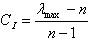 (5)一致性檢驗(yàn) 模糊比較矩陣一致性是指要求矩陣元素滿(mǎn)足aik*akj=aij,而評(píng)判矩陣的各元素的賦值是由決策者根據(jù)各元素相互重要性設(shè)定的,但有時(shí)會(huì)出現(xiàn)“甲比乙重要,乙比丙重要,但丙又比甲重要”違背邏輯一致性的可能,一致性C的計(jì)算方法如下式。
