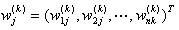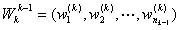 個(gè)元素對(duì)k-1層上第j個(gè)元素權(quán)重向量為: