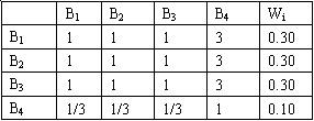 表2 子目標(biāo)層B相對(duì)于總目標(biāo)層A的比較矩陣