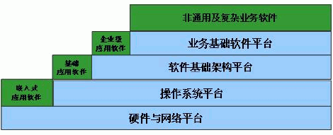 業務基礎軟件平臺是計世資訊(CCW Research)于2003年提出的理念。計世資訊(CCW Research)給業務基礎軟件平臺的定義為,它是指以業務導向和驅動的、可快速構建應用軟件的軟件平臺。業務基礎軟件平臺是以業務導向和驅動的軟件架構體系,是一個新出現的軟件層級。和操作系統平臺、軟件基礎架構平臺相比,業務基礎軟件平臺和用戶的管理及業務相關度比較大,是應用軟件開發的通用基礎平臺。操作系統平臺解決了“應用軟件系統與硬件之間的交互與管理問題”,軟件基礎架構平臺解決了“應用軟件系統與操作系統平臺之間的交互與管理問題”,而業務基礎軟件平臺則是解決了“應用軟件的業務描述與操作系統平臺、軟件基礎架構平臺之間的交互與管理問題”。因此,業務基礎軟件平臺最大的特點就是面向業務和技術無關性。