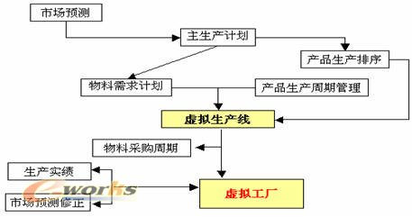 與ERP基本思路一致,首先基于預(yù)測(cè)產(chǎn)生主生產(chǎn)計(jì)劃,將主生產(chǎn)計(jì)劃進(jìn)一步細(xì)化為生產(chǎn)順序,通過BOM產(chǎn)生物料需求計(jì)劃,然后設(shè)定產(chǎn)品生產(chǎn)周期管理數(shù)據(jù)庫(kù),將兩者融合成為工廠的虛擬生產(chǎn)線,再結(jié)合物料采購(gòu)周期數(shù)據(jù)庫(kù)、生產(chǎn)實(shí)績(jī)與市場(chǎng)預(yù)測(cè)的修正產(chǎn)生虛擬工廠的概念。這樣的好處在于: