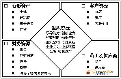 曾經的咨詢界大佬安達信公司提出過一個企業資源的動態模型,如圖1。這個資源模型將企業的有形資產、財務資源、客戶、員工、供應商、甚至是創新能力與業務流程等組織資源全部納入其中,一個企業,要想在激烈的競爭中生存發展基業常青,就要有效地挖掘自身各類資源的潛力,優化資源配置、整合資源結構使其發揮更大的作用。