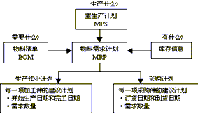 MRP的基本任務(wù)是:⑴從最終產(chǎn)品的生產(chǎn)計(jì)劃(獨(dú)立需求)導(dǎo)出相關(guān)物料(原材料、零部件等)的需求量和需求時(shí)間(相關(guān)需求);⑵根據(jù)物料的需求時(shí)間和生產(chǎn)(訂貨)周期來(lái)確定其開(kāi)始生產(chǎn)(訂貨)的時(shí)間。