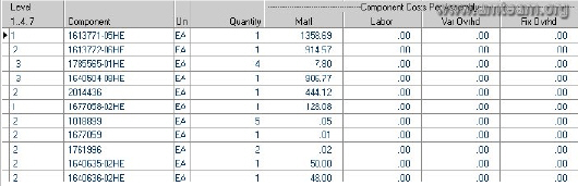 由于集成化的ERP系統都以物料需求計劃驅動,而BOM是基礎。事實上制造BOM的結構將決定產品的成本和物料計劃的運行。任何對BOM的變動都可能影響物料需求,存貨和生產成本。無論物料層次,數量還是單位都會對成本產生影響。如下圖所示: