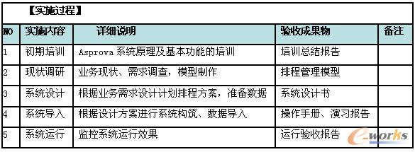 此次APS項目實施共分為五個階段,初期培訓(xùn)、現(xiàn)狀調(diào)研、系統(tǒng)設(shè)計、系統(tǒng)導(dǎo)入和系統(tǒng)運行階段。