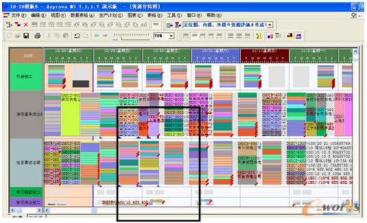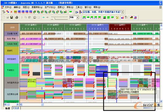 然后,瓶頸資源要求的特殊性和瓶頸資源的動態(tài)變化。模具要求跨工序鎖定,爐資源要求不同作業(yè)時間的工作同進(jìn)同出。這兩類資源的特殊要求,加大了項目實施的難度。通過對所選APS軟件的改進(jìn),通過對資源后設(shè)置的綜合運用,使得項目實施順利進(jìn)行。由于訂單結(jié)構(gòu)的變化(市場不穩(wěn)定性),瓶頸資源會動態(tài)變化。系統(tǒng)所涉及的任何資源,都有可能成為瓶頸。這對每個資源設(shè)定的精準(zhǔn)性提出了更高要求。項目組通過對主要可能瓶頸資源進(jìn)行了詳細(xì)的分析,精確設(shè)置資源滿足動態(tài)約束。