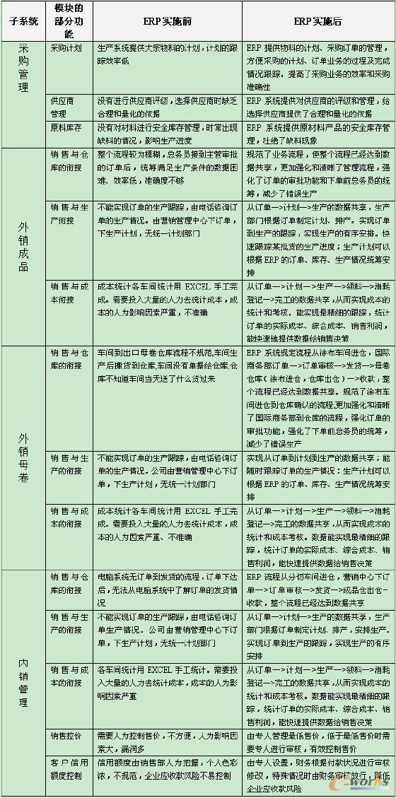 以下是永大各主要業(yè)務(wù)部門在實(shí)施ERP系統(tǒng)前后在管理上的對(duì)比: