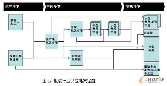 下面,以中國的服裝行業(yè)來探討服裝體系的供應(yīng)鏈。首先整個(gè)供應(yīng)鏈?zhǔn)莻鹘y(tǒng)批發(fā)市場,精準(zhǔn)投放的市場還是一片空白。單一企業(yè)供應(yīng)鏈的運(yùn)作流程包括從采購、倉儲(chǔ)、庫存管理、運(yùn)輸?shù)筋櫩头⻊?wù)等環(huán)節(jié)的管理。如果把這個(gè)體系再進(jìn)行一次分步,流程可以延伸到每個(gè)供應(yīng)商,然后依次到運(yùn)輸、組裝、分配、零售商、客戶。它們都包含了生產(chǎn)、包裝、倉儲(chǔ)、挑揀、接受、倉儲(chǔ)、挑揀、運(yùn)輸、接收、倉儲(chǔ)、挑揀再運(yùn)輸?shù)鹊攘鞒獭T谡麄(gè)過程中會(huì)產(chǎn)生大量的離散數(shù)據(jù),但是這些數(shù)據(jù)中有很多是能夠貫穿始終的。我們想對(duì)供應(yīng)鏈極做大規(guī)模的提升,就需要對(duì)這些數(shù)據(jù)進(jìn)行加工、管理或處理。如圖1所示。