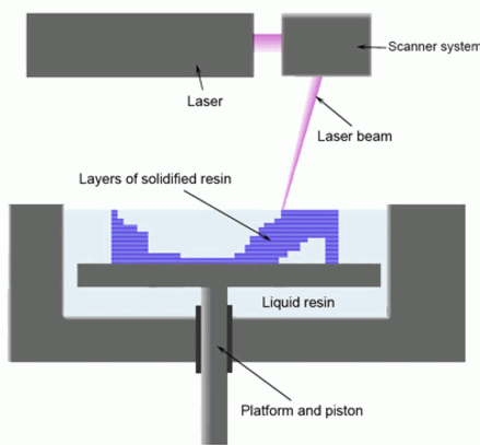 立體光刻造型技術,網友們可以想象一下把一根黃瓜切成很薄的薄片再拼成一整根。先由軟件把3D的數字模型,“切”成若干個平面,這就形成了很多個剖面,在工作的時候,有一個可以舉升的平臺,這個平臺周圍有一個液體槽,槽里面充滿了可以紫外線照射固化的液體,紫外線激光會從底層做起,固化最底層的,然后平臺下移,固化下一層,如此往復,直到最終成型。
