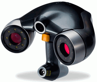 常見的3D掃描儀有兩種,一種是接觸式的,一種是非接觸式的。目前非接觸式的面狀光柵3D掃描儀是市場上的重點產品,這是結構光技術、相位測量技術和計算機視覺技術的組合。特點是速度快,精度高(0.03毫米)可掃描的物體體積大。