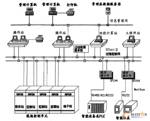 DCS系統由3個操作站(其中1個兼工程師站)、兩臺打印機、2個現場控制站和安全柵構成。控制站主控制卡、數據轉發卡、組成控制回路的輸入輸出卡件和控制站供電電源均實現1:1熱冗余。系統現場信號經現場安全柵隔離直接進入過程控制站,通過DCS網絡(scnetⅡ)與操作站相連,實現了生產過程的監控。DCS系統結構如圖5所示。