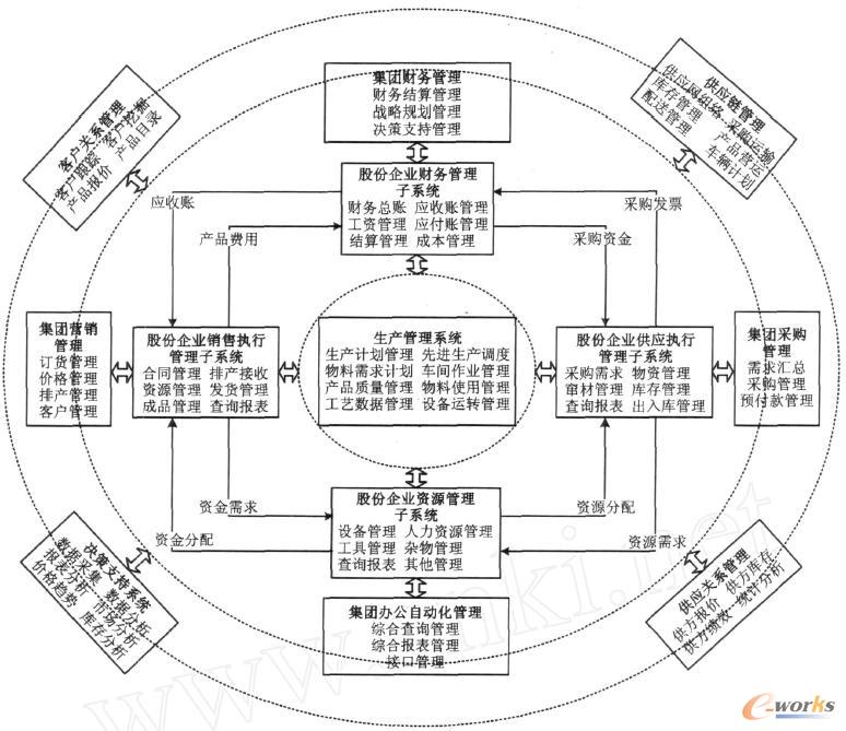 2.3 企業(yè)集團信息系統(tǒng)的總體功能集成框架