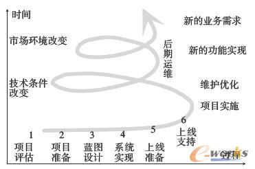 ERP項目是一個持續(xù)改善的過程,不管是系統(tǒng)實施還是系統(tǒng)保障,或者是系統(tǒng)優(yōu)化、系統(tǒng)擴充,都必須通過項目評估、項目準備、藍圖設(shè)計、系統(tǒng)實現(xiàn)、上線準備、上線支持等6個步驟保障系統(tǒng)的穩(wěn)定,ERP項目持續(xù)改善過程如圖1所示。