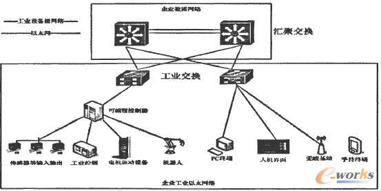 生產制造車間的工業以太網是為了解決車間和生產工控設備的只能控制和生產數據的下發執行。通過工業交換機和可編程控制器將工業設備級網絡通IP數據網絡結合在一起,實現了辦公、智控及人機交互設備網絡的智能一體化。