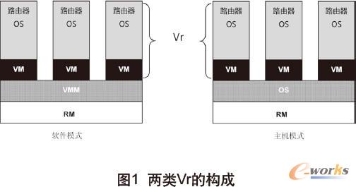 Vr由一個基于虛擬機的具有路由功能的操作系統平臺提供的。它基于路由器硬件平臺,但通過系統虛擬技術,實現多個路由器功能模塊獨立工作,在單個物理設備上提供多個路由器的功能。典型Vr由4部分構成(圖1):