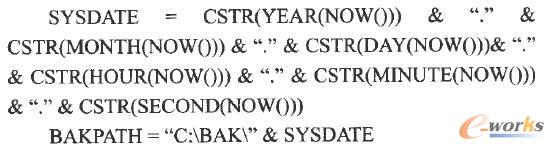 首先利用VBscript提供的N0W()函數(shù)獲取系統(tǒng)時間,并對其進行格式化輸出。然后設置備份信息在備份終端的保存路徑,其命名規(guī)范為[C:\BAK\備份時間\]。具體代碼如下: