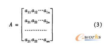 判斷矩陣是利用專家知識(shí)對(duì)每一層次評(píng)價(jià)指標(biāo)相對(duì)于上一層次中某個(gè)功能模型的相對(duì)重要性進(jìn)行兩兩比較,全部指標(biāo)經(jīng)過(guò)專家的兩兩判定之后,可形成一個(gè)比較判斷矩陣A。