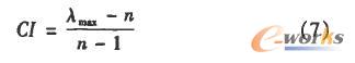 式中:n為判斷矩陣的階次,λMAX為判斷矩陣的最大特征根。
