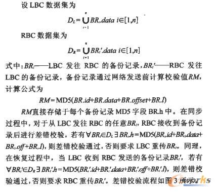 DBS通過管理中心建立災(zāi)備任務(wù),將LBC需要備份的磁盤分區(qū)同步到RBC的存儲中心,并同時將任務(wù)信息寫入數(shù)據(jù)庫服務(wù)器。當(dāng)LBC對應(yīng)的磁盤數(shù)據(jù)遭到破壞后,通過管理中心啟動數(shù)據(jù)恢復(fù),RBC將存儲中心對應(yīng)的備份記錄發(fā)送到LBC進行數(shù)據(jù)恢復(fù)。當(dāng)業(yè)務(wù)正常運行期間,可以啟動實時同步,和定時同步進行相互補充,提高備份效率m。實時同步通過本地服務(wù)器的卷過濾驅(qū)動監(jiān)控對磁盤的寫操作,將數(shù)據(jù)變化封裝成備份記錄存儲在本地海量緩存中。在海量緩存滿或者同步時限到時依次取出備份記錄,發(fā)送到遠程備份中心,這樣就實現(xiàn)了本地服務(wù)器和遠程備份中心的實時一致,從而避免了傳統(tǒng)實時備份系統(tǒng)在增量備份時需要進行全盤一致性檢測這種低效的方法例。