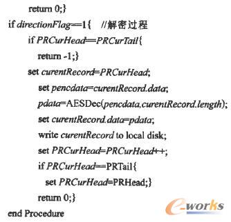 Nsfiler處理IRP MJ WRITE包是為了截取對磁盤寫操作的有效數(shù)據(jù),同時發(fā)往下層驅(qū)動,提高系統(tǒng)運行效率;處理IRP—MI—DEVICE CONTROL包是為了處理Nsfiler自定義的IO控制碼,如鎖卷、啟動監(jiān)控、設(shè)置緩存等,對這類IRP包處理完成后就標(biāo)志其狀態(tài)為completed,不再往下層驅(qū)動轉(zhuǎn)發(fā),其他的操作系統(tǒng)自有的10控制則簡單的轉(zhuǎn)發(fā)到下層驅(qū)動。Nsfilter的處理流程偽碼描述如下: