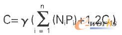 機房設計時根據用途、設備數量、功率等不同因素,對其用電容量進行計算,從而選擇相應的電源設備和UPS設備。假設機房的用途系數為γ,已有設備數量為Ni,對應的設備最大功率為Pi(i為設備種類號),則機房的總設計容量C 的經驗計算公式為: