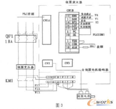 PLC與伺脹放大器的接線圖.如圖3所示PLC的接線只需要接電游瑞(DC21V),把CON2連接到伺服放大器的CN1A即可伺服放大器的電源為交流200V需要一個(gè)380V/200V的變壓器,伺服電機(jī)的電源端和編碼器反憤直接連到伺服放大器上即可,伺服放大器CN1B的紫急停止,ENG端在系統(tǒng)運(yùn)行正常時(shí)要求它常通,它斷開后放大器急停,伺服放大器CN1B的正極限LSP負(fù)吸限LSN常通即可當(dāng)放大器正常工作時(shí),其ALM端輸出低壓電平,SKA線圈斷電。