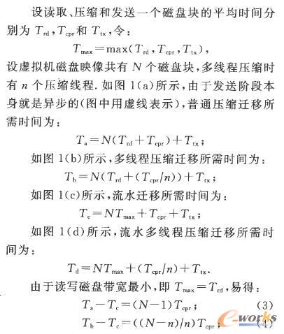 發(fā)送和接收映像是異步操作,與其他階段并行執(zhí)行;遷移內(nèi)存時,內(nèi)存映像的讀寫非常快,開銷完全可以忽略,因此,傳統(tǒng)的多線程壓縮方法E5]能很好地并行內(nèi)存遷移各個階段,然而,磁盤映像的讀寫開銷很大,甚至比網(wǎng)絡(luò)傳輸還慢,單純的多線程壓縮遷移磁盤就不是非常有效了。