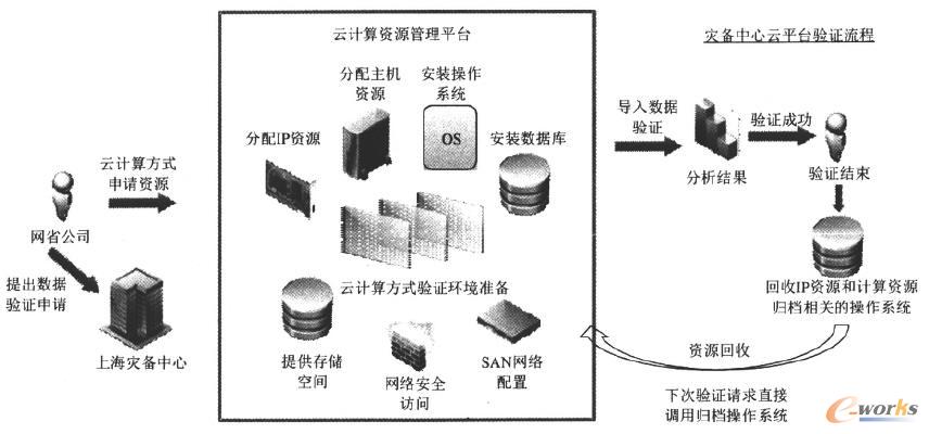 1)申請(qǐng)。用戶(各網(wǎng)省公司)在云計(jì)算資源管理平臺(tái)提出數(shù)據(jù)驗(yàn)證申請(qǐng),云計(jì)算資源管理平臺(tái)負(fù)責(zé)申請(qǐng)過(guò)程的審批流程,使原有流程具備IT支撐。