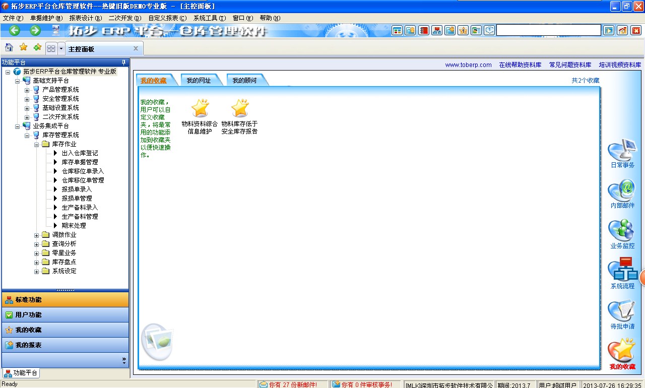 拓步ERP業務系列倉存版(倉庫管理軟件)在線試用