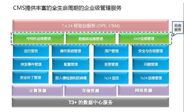 因此,第一,CMS是符合ITIL標準的全面云服務。實際上,當市場上大多數云服務還停留在系統程序級管理層面,并將其他的服務管理工作都交給用戶自行處理。而IBM CMS則推出了具體到應用層的全托管服務,使云架構從構建伊始便支持企業核心應用,并提供高可用性服務器及系統冗余,如圖2所示。因此,在彈性實例的配置時間上,CMS云需要24小時而非一般公有云的幾分鐘,就是包括了全面的云服務,以確保企業云的安全有效。
