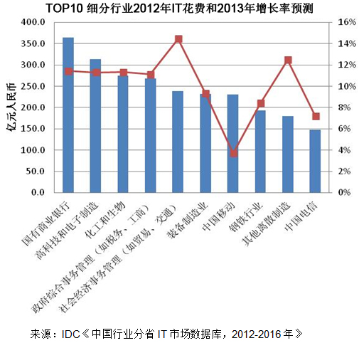 IDC中國行業研究與咨詢服務部高級研究經理肖宏亮說:“我們預計2013年在中國經濟發展速度逐漸回升的大背景下,政府和醫療行業的IT市場將保持高速增長,國有商業銀行、高科技電子制造、財產保險、便利店等細分市場將保持平穩高速增長,建議廠商在開拓市場時,更加細化挖掘主要細分行業的市場,以獲得新的市場增長動力。”