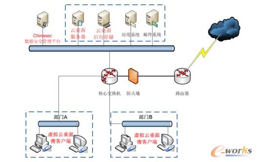 同時通過統一桌面云進行后臺存儲和管理,無法通過傳統交換機方式實現VLAN的邏輯劃分,對于部門之間或者工作組之間的隔離無法完成。同時,網絡作為一個開放性的交互手段,數據交互存在很大的便利性,同時對于數據的外泄也是一個巨大的風險點。