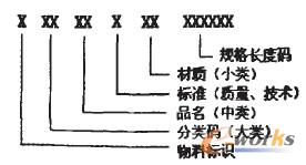 此方式廣泛用于型材(螺紋鋼、線材、角鋼、槽鋼、H型鋼等)編碼,一般鋼鐵企業型材的鋼種、規格比較少。使用每個物料編碼對應每種物料的收集工作量比較小,物料的檢索,使用比較簡單。一般此編碼采用“分類碼+關鍵屬性碼字段+順序號”方式實現,如圖1所示。
