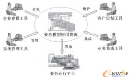 圖2 業務模型資源和業務建模工具、業務運行平臺的關系