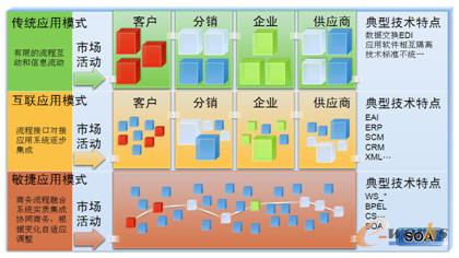 SOA的內(nèi)在核心在于將原來一個(gè)個(gè)“大塊”系統(tǒng)拆分成一個(gè)個(gè)標(biāo)準(zhǔn)接口的“小塊”系統(tǒng),把軟件變成像現(xiàn)在的積木玩具一樣,成為一個(gè)個(gè)的“小塊”(SOA把企業(yè)基本應(yīng)用封裝成一個(gè)個(gè)獨(dú)立的服務(wù),如企業(yè)中財(cái)務(wù)應(yīng)收發(fā)票的處理就是一個(gè)“小塊”),可以反復(fù)拼接,但是他們之間要有一系列共同遵循的標(biāo)準(zhǔn)(獨(dú)立服務(wù)之間的接口遵循一系列統(tǒng)一的標(biāo)準(zhǔn)),并且有一定的靈活性,可以讓企業(yè)根據(jù)自己的需要?jiǎng)?chuàng)建企業(yè)個(gè)性化的系統(tǒng),同時(shí)當(dāng)企業(yè)有新的業(yè)務(wù)需求或業(yè)務(wù)發(fā)生變化時(shí),只需再購買或更換所對應(yīng)的小塊(獨(dú)立服務(wù))即可。