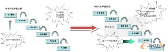 在U9的開發(fā)過程中,用友一開始并未直接投身于產(chǎn)品開發(fā)當(dāng)中,而是花了半年以上的時(shí)間,從以往積累的多個(gè)客戶當(dāng)中提煉出了不同企業(yè)的商業(yè)模式,然后以商業(yè)模式為指向,來搭建U9的軟件架構(gòu)。