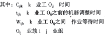 在減少了產(chǎn)品加工的機器調(diào)整時間的同時,同一作業(yè)族連續(xù)不間斷生產(chǎn)則會造成其他作業(yè)族的等待時間,因此,根據(jù)多批次小批量的JIT制造思想,同一族的作業(yè)在加工過程中可分成若干作業(yè)組,同族的作業(yè)連續(xù)加工,其后的作業(yè)沒有機器重新設(shè)置時間,不同族的作業(yè)連續(xù)加工,其后的作業(yè)有機器重新設(shè)置時間。因此大規(guī)模定制企業(yè)零件生產(chǎn)調(diào)度問題屬于考慮到零件加工等待時間、作業(yè)機器調(diào)整時間下的作業(yè)族分組調(diào)度問題。
