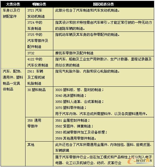 從國家統計局的行業統計分類口徑上來看,汽車零部件行業內容可以包括: