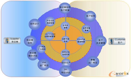 ·交易型的關系,轉向供應商協同。這是一個跨行業的業務話題,基本不用多說,但在汽車零部件行業他的協同機制是在整個汽車制造供應鏈上層層傳遞的,協同發生的范圍也是所有制造行業最深入和最持久。目前國內的協同仍然體現在交易數據的協同方面,深入的進行生產協同、設計協同等協同,仍然需要進一步深入的發展和設計。