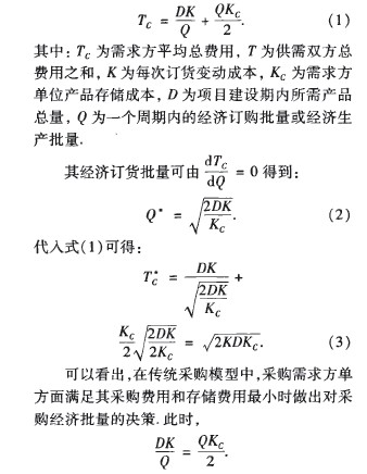 3 建筑業(yè)供應(yīng)鏈管理環(huán)境下采購數(shù)學(xué)模型