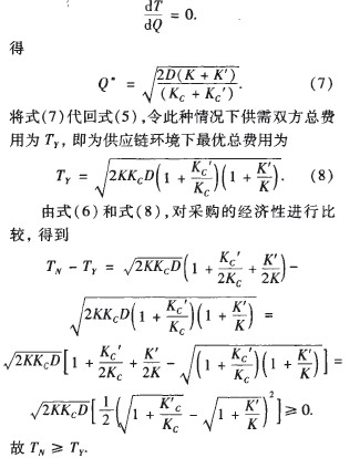 供應(yīng)鏈環(huán)境下,采購方的經(jīng)濟訂貨量與供應(yīng)商的經(jīng)濟生產(chǎn)量相同時,采購才是最經(jīng)濟的.而在傳統(tǒng)的采購模式下,經(jīng)濟訂購批量所考慮的僅僅是需求方單方面的訂購費用與存儲費用相同。