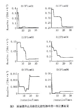 現(xiàn)某煉油廠原油性能指標(biāo)、庫(kù)存數(shù)據(jù)、單價(jià)及調(diào)和后的混合原油性能指標(biāo)要求如表1所示。原油調(diào)和在局部?jī)?yōu)化控制器中計(jì)算結(jié)果的其中實(shí)際原油調(diào)和模型參見文獻(xiàn)中的方案。一組數(shù)據(jù)如圖3所示。